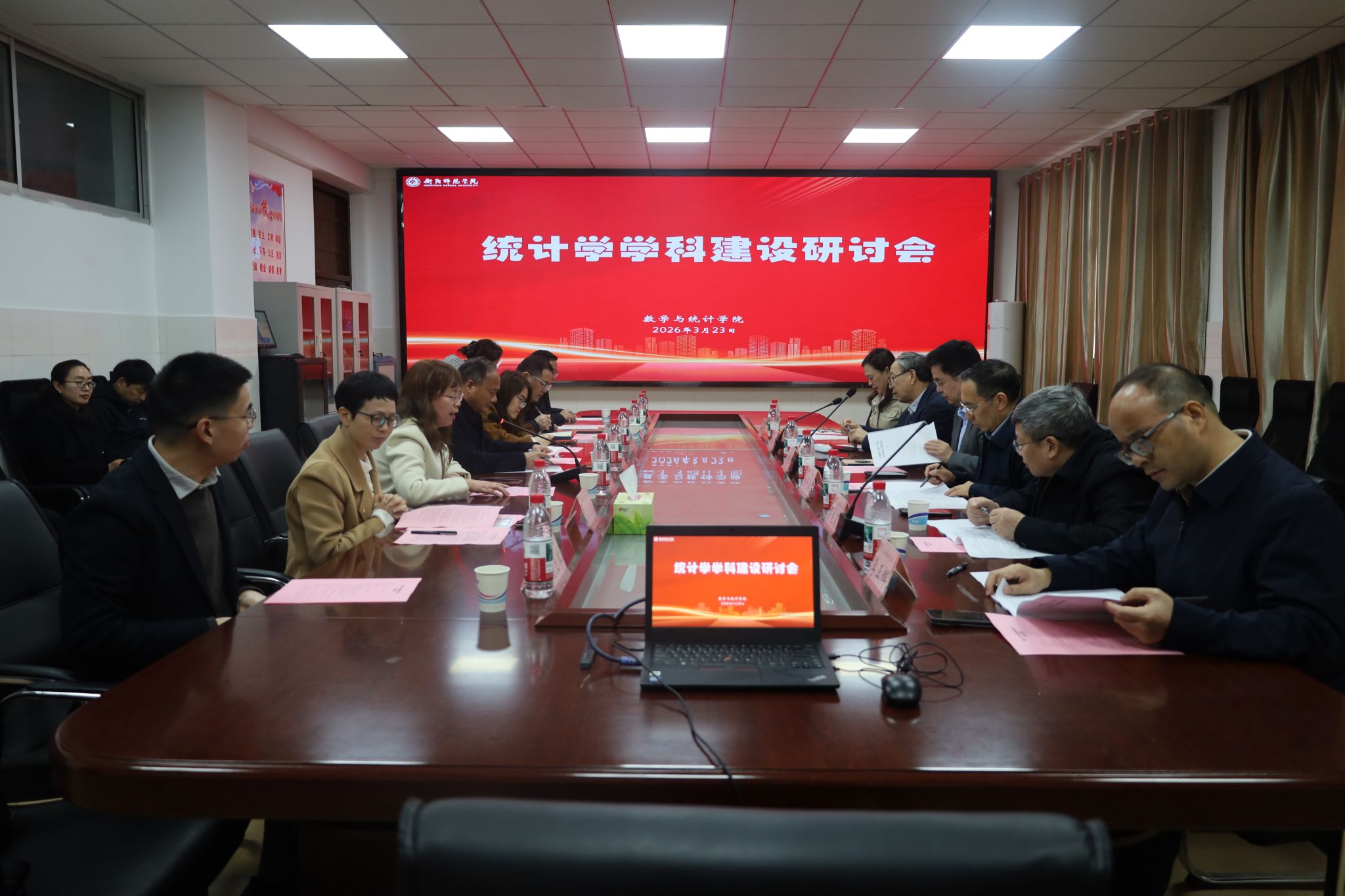2026年3月23日下午,衡阳师范学院在东校区九章楼306会议室召开统计学学科建设研讨会。会议邀请了国家统计局原副局长、全国应用统计专业学位研究生教育指导委员会主任委员、中国统计教育学会会长毛有丰,国内知名统计专家史代敏、张虎、罗良清、刘妍岩、李正辉等。校党委委员、副校长聂东明,学校研究生院副院长宁顺花、数学与统计学院领导班子成员、学院教师代表参加会议。会议由数学与统计学院党总支书记彭巧燕主持。