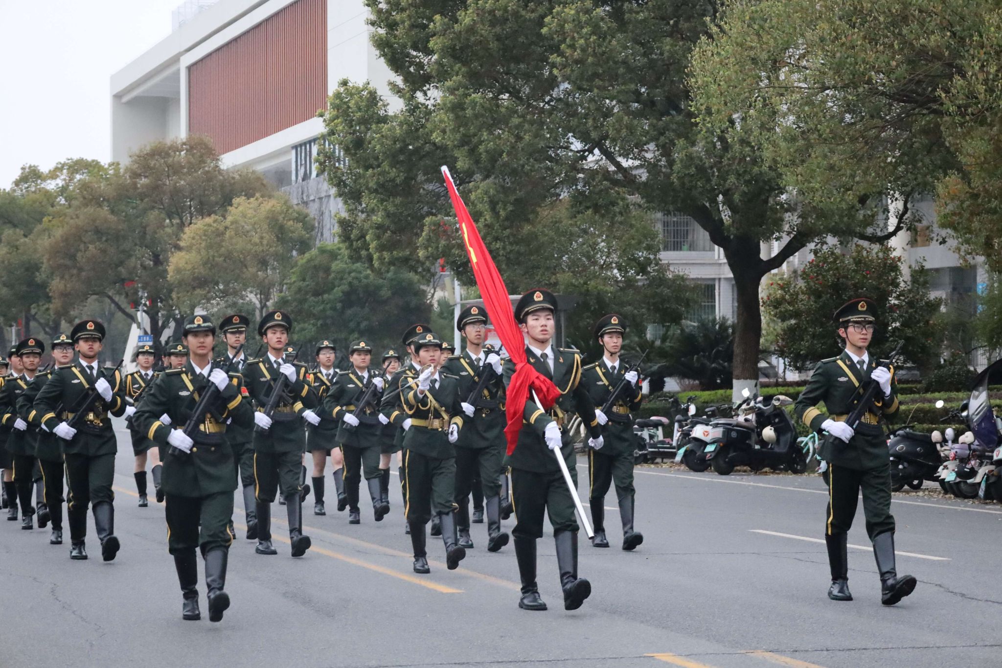 教导队成员身着制服、步伐铿锵,以挺拔的身姿护卫国旗入场,目光坚毅地守护国旗荣光。雄浑的国歌奏响,五星红旗迎着朝阳冉冉升起,全场师生肃立行注目礼,爱国情怀在心中激荡。