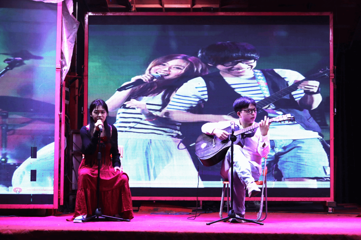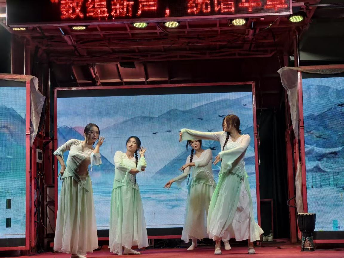 在第二篇章中,彭巧燕书记、黄钽成老师、周长恩老师、唐威老师、米子老师、颜绘锦老师共同献唱《明天会更好》,用歌声传递对学子们的殷切期许与美好祝愿,真挚情谊直抵人心,成功将晚会氛围推向又一个温馨小高潮。紧接着,精彩轮番上演:25T2胡琪慧携22级法院吉他手孙磊,带来清新活泼的弹唱《太聪明》;艺术团主持人们献上铿锵有力的朗诵《红铁》,尽显赤诚担当;2506黄为凯的武术表演《墨舞孤影》刚柔并济、气势十足。这场多元风采的集中展现,充分彰显了数统学子的多才多艺与青春活力。