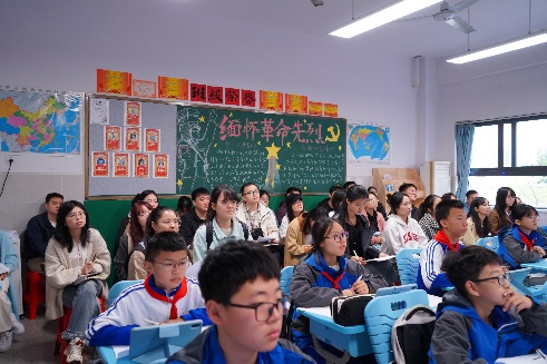 见面会后,我院师生走进真实课堂,开展沉浸式观摩,先后聆听唐洋老师的《完全平方公式》、彭周龙老师的《整式的加减》两节数学课,以及余招弟老师的主题班会课《做不被定义的“我”》。三位老师风格迥异,三堂课展现了多元教学风格,为研究生们提供了构建优质课堂的生动范例与宝贵参考。