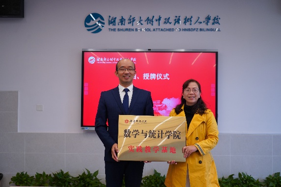 在热烈的掌声中,双方领导共同完成了“衡阳师范学院数学与统计学院教育实践基地”授牌仪式,标志着两校合作进入了新的阶段。