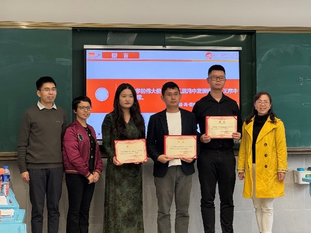 下午进行评课交流。唐洋和彭周龙老师先后说课,分享教学设计思路与反思;我院五位研究生结合观摩体会,从课程引入、环节设计等角度交流见解;八年级主任李宏宇老师从教学实际出发展开专业点评。为感谢授课教师的精彩展示,我院领导为其颁发荣誉证书。